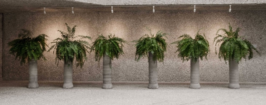 Pipas de concreto y helechos